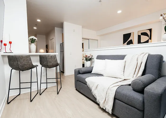 Seaside Serenity - Chic Santa Monica Studio features an access to a fully furnished kitchen with an oven and a dishwasher. 7th St/Metro Center train station is 24 km from the accommodation and Los Angeles International airport is a 17-minute drive away.